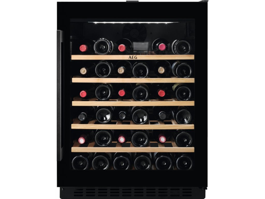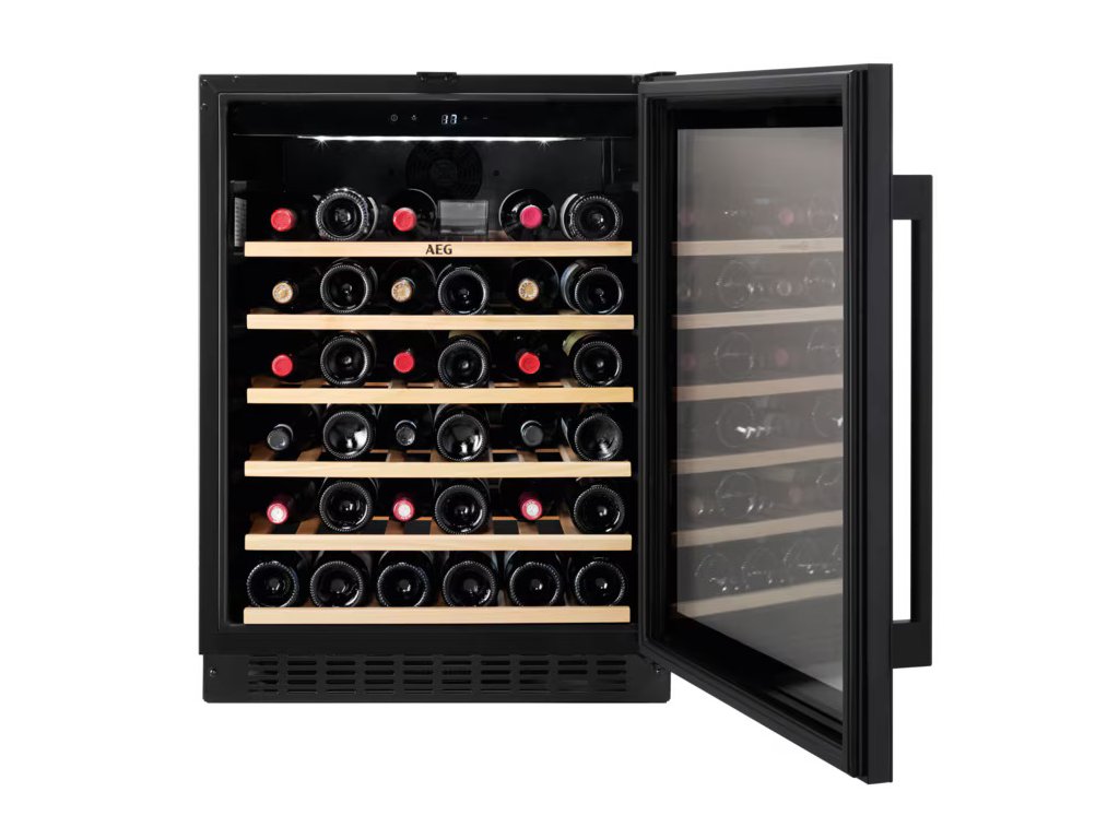 AEG AWS4052B5B – elegantní vinotéka s dřevěnými policemi, LED osvětlením a nastavitelnou teplotou 5–18 °C pro dokonalé skladování vína.
