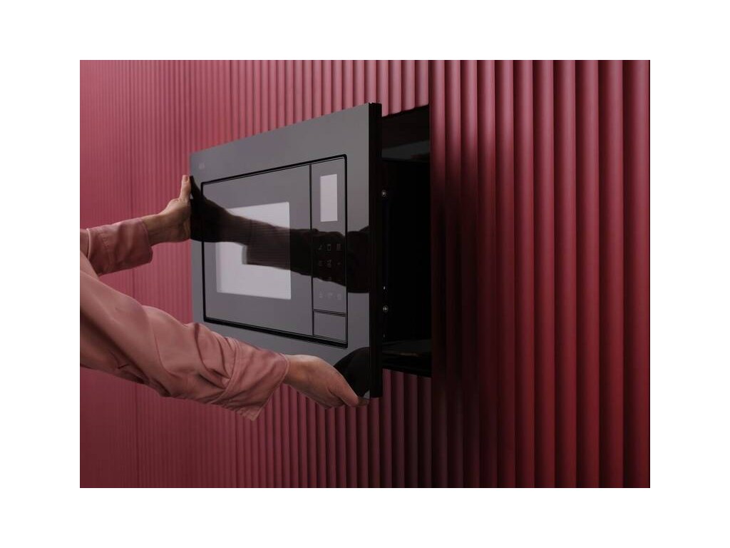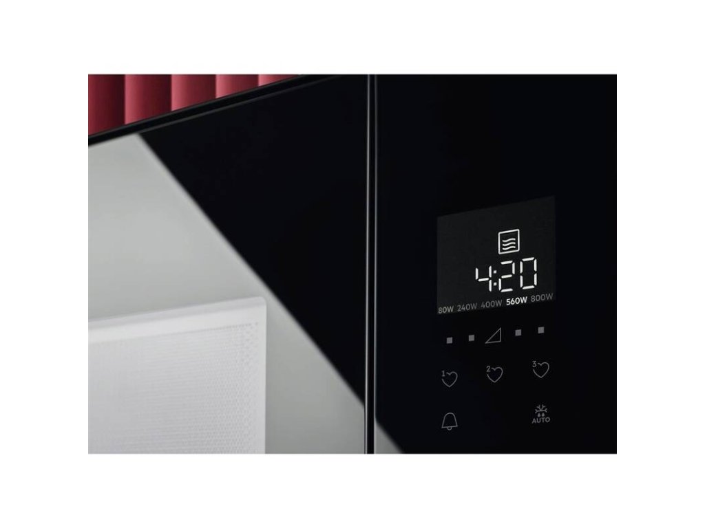 Dvířka se otevírají jemným dotykem, dotykový panel nabízí 5 úrovní výkonu a LED displej poskytuje jasné informace o průběhu vaření. Funkce rychlého startu umožňuje okamžitý ohřev na plný výkon v intervalech po 30 sekundách.