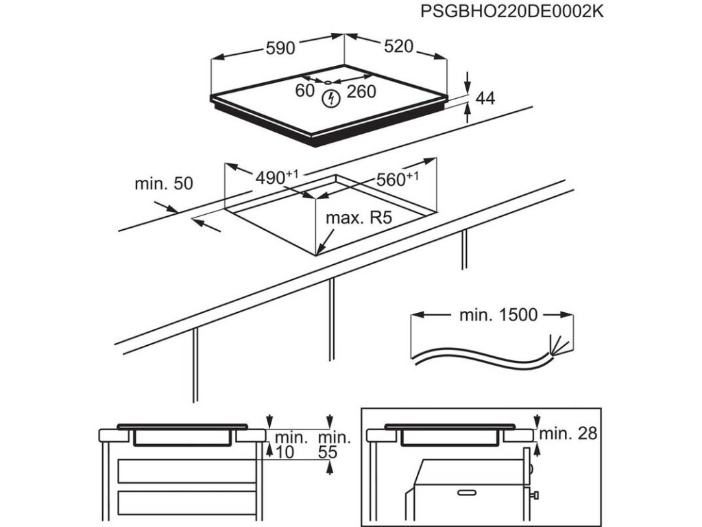 Rozměry pro instalaci (VxŠxH) | 44 × 560 × 490 mm |