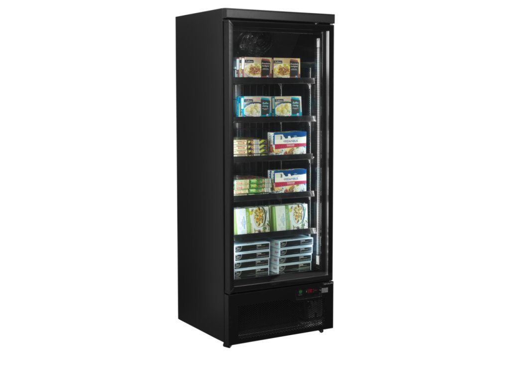 Mraznička Atom Maxi nabízí špičkovou skladovací kapacitu a je ideální pro vystavení mražených potravin v supermarketech, obchodech se smíšeným zbožím, lahůdkářstvích, řeznictvích a obchodech se zvířaty. Tato skříň s černým interiérem a exteriérem přináší stylový a moderní design do každé provozovny. Má samozavírací skleněné dveře a vnitřní LED osvětlení pro optimální prezentaci výrobků. Ventilované chlazení umožňuje nastavování polic, díky čemuž lze skříň přizpůsobit na míru vybraným produktům. Skříň má automatické odmrazování a lze v ní snadno nastavit teplotu na digitálním ovladači. S mrazničkou Atom Maxi získáte kvalitní chladicí skříň s prosklenými dveřmi za konkurenceschopnou cenu.