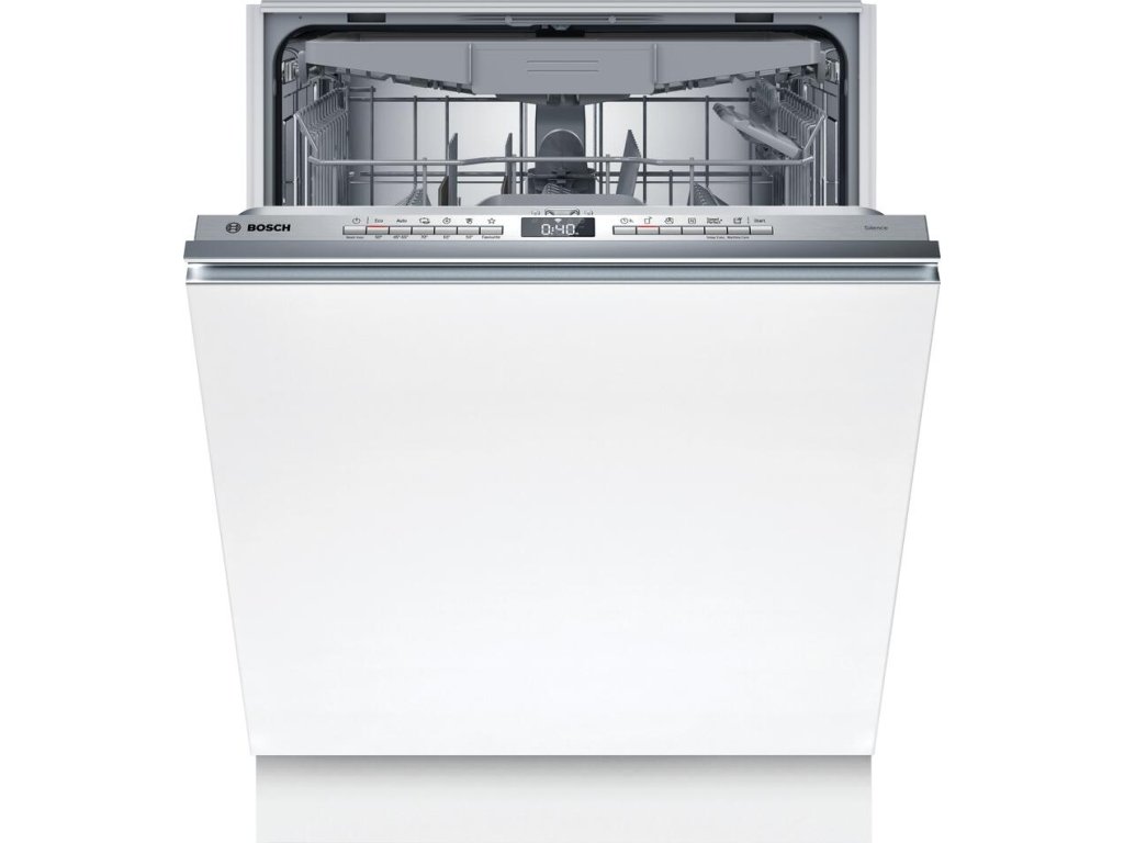 Plně vestavná myčka nádobí Bosch SMV4EVX04E série 4 o šířce 60 cm přináší úsporný a tichý provoz, inteligentní Wi-Fi připojení Home Connect a špičkové sušení díky technologii EfficientDry s automatickým otevíráním dveří. Nabízí flexibilní systém košů VarioFlex s příborovou zásuvkou VarioDrawer, kapacitu 13 sad nádobí a spolehlivou ochranu AquaStop.
