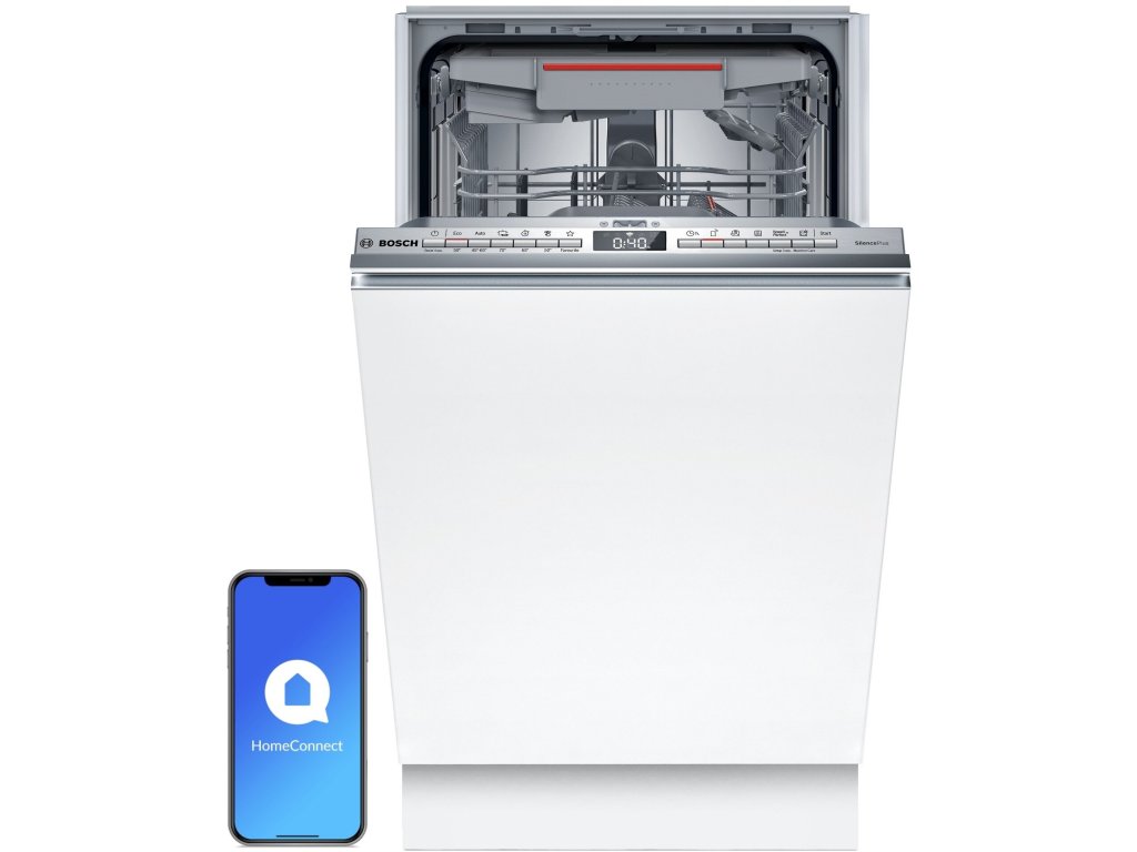 Úzká vestavná myčka Bosch Serie 4 SPV4EMX24E s kapacitou 10 sad, 6 programy, technologií Home Connect a tichým provozem 44 dB.