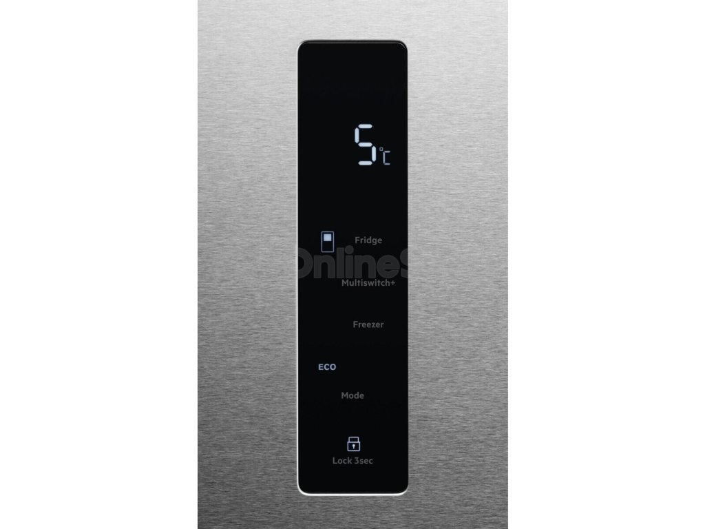 Chladnička nabízí rychlé zmrazení, funkci Dovolená pro snížení spotřeby energie během nepřítomnosti i elektronické ovládání s přehledným LCD displejem. Oddělené ovládání chladicí a mrazicí části umožňuje přesné nastavení teploty podle potřeby.