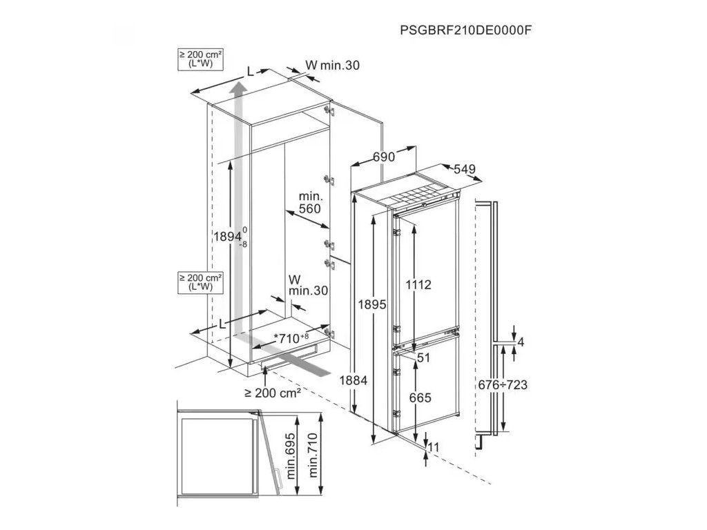 - Rozměry pro vestavbu (V׊×H): 1894 × 710 × 560 mm
