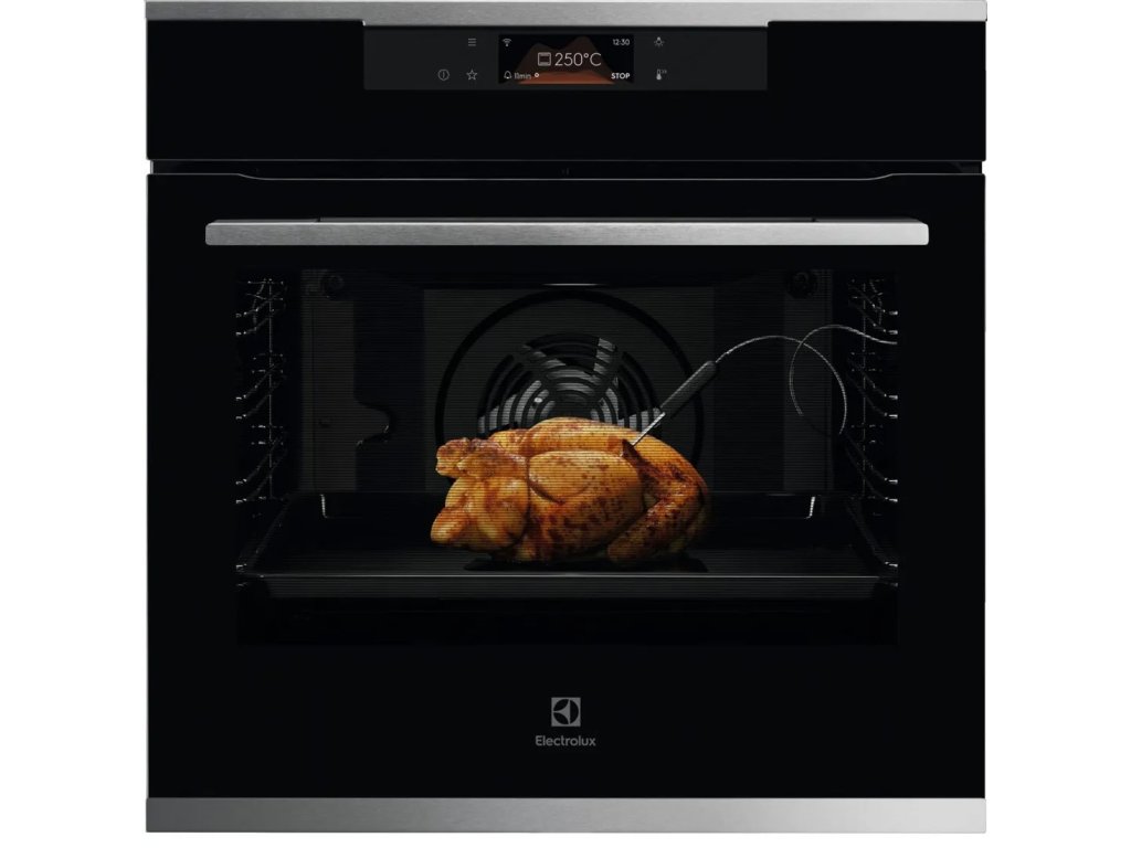 Vestavná trouba Electrolux KOEBP39WX série 800 SenseCook s teplotní sondou, pyrolýzou, Wi‑Fi a intuitivním ovládáním.