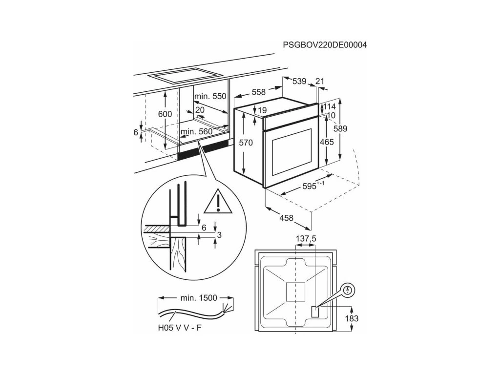 - Rozměry pro vestavbu (V × Š × H): 590 × 560 × 550 mm
