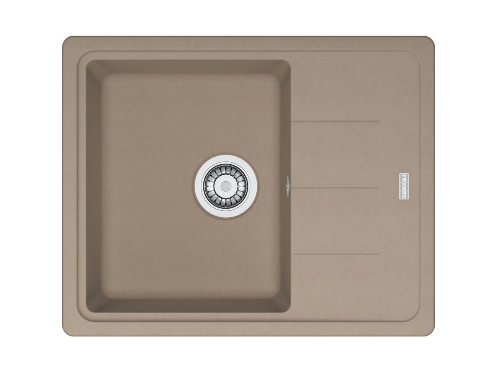 Fragranitový dřez Basis. Cena zahrnuje: Sítkový ventil 3 1/2“ s přepadem. Sifon pro úsporu místa 6/4“ s odbočkou na myčku nádobí. 4
