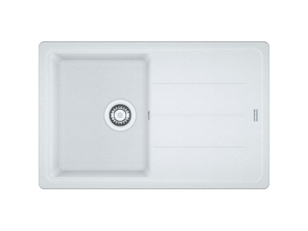 Fragranitový dřez Basis. Cena zahrnuje: Sítkový ventil 3 1/2“ s přepadem. Sifon pro úsporu místa 6/4“ s odbočkou na myčku nádobí. 2
