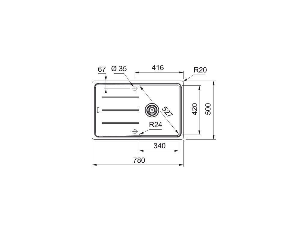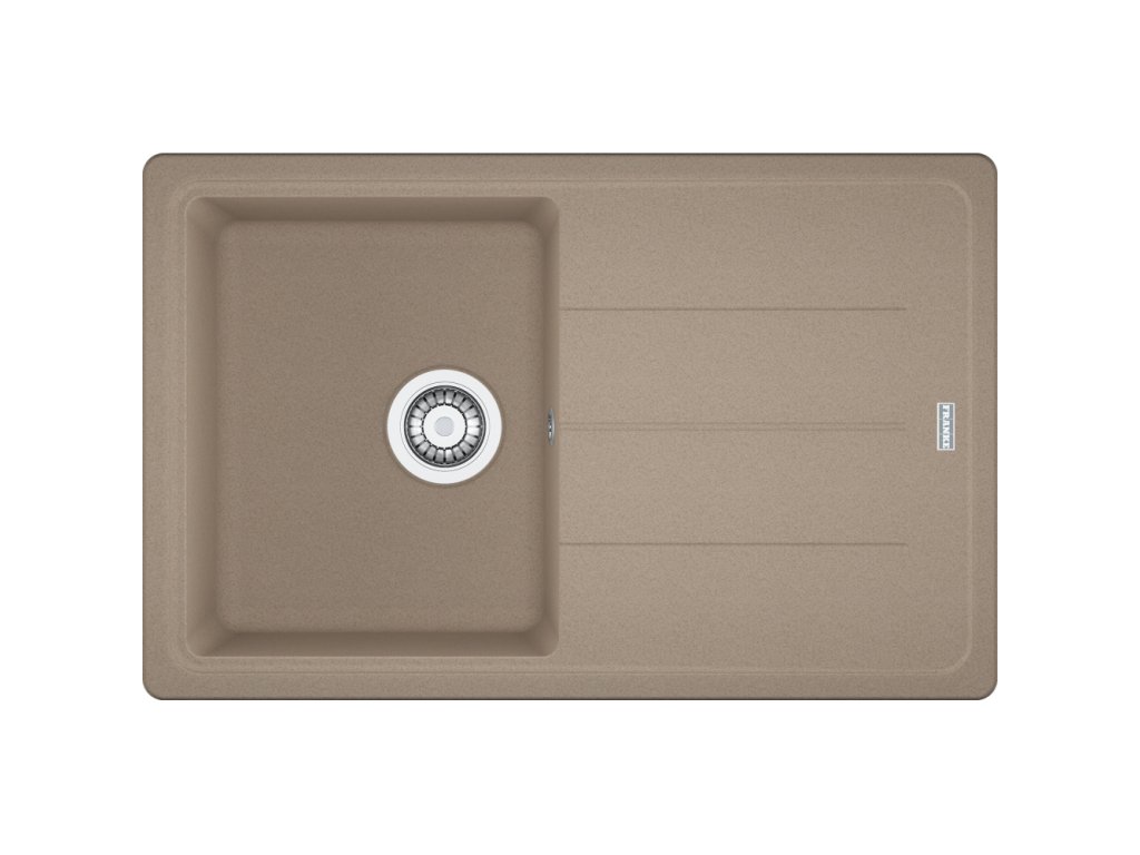 Fragranitový dřez Basis. Cena zahrnuje: Sítkový ventil 3 1/2“ s přepadem. Sifon pro úsporu místa 6/4“ s odbočkou na myčku nádobí. 2