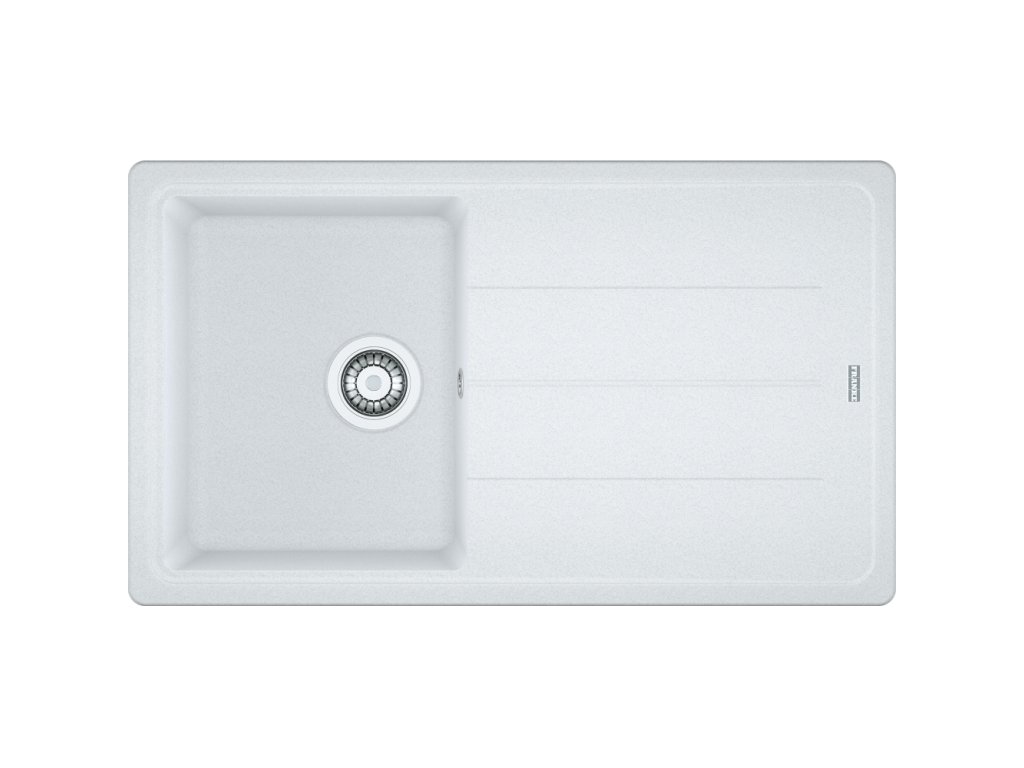 Fragranitový dřez Basis. Cena zahrnuje: Sítkový ventil 3 1/2“ s přepadem. Sifon pro úsporu místa 6/4“ s odbočkou na myčku nádobí. 2