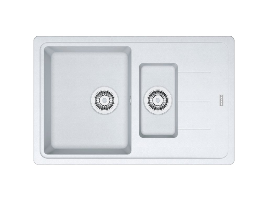 Fragranitový dřez Basis. Cena zahrnuje: Sítkový ventil 3 1/2“ s přepadem. Sítkový ventil 3 1/2“. Sifon pro úsporu místa 6/4“ s