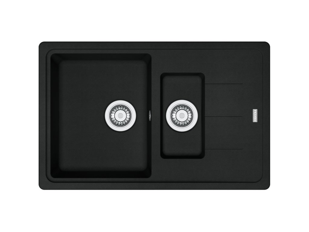 Fragranitový dřez Basis. Cena zahrnuje: Sítkový ventil 3 1/2“ s přepadem. Sítkový ventil 3 1/2“. Sifon pro úsporu místa 6/4“ s