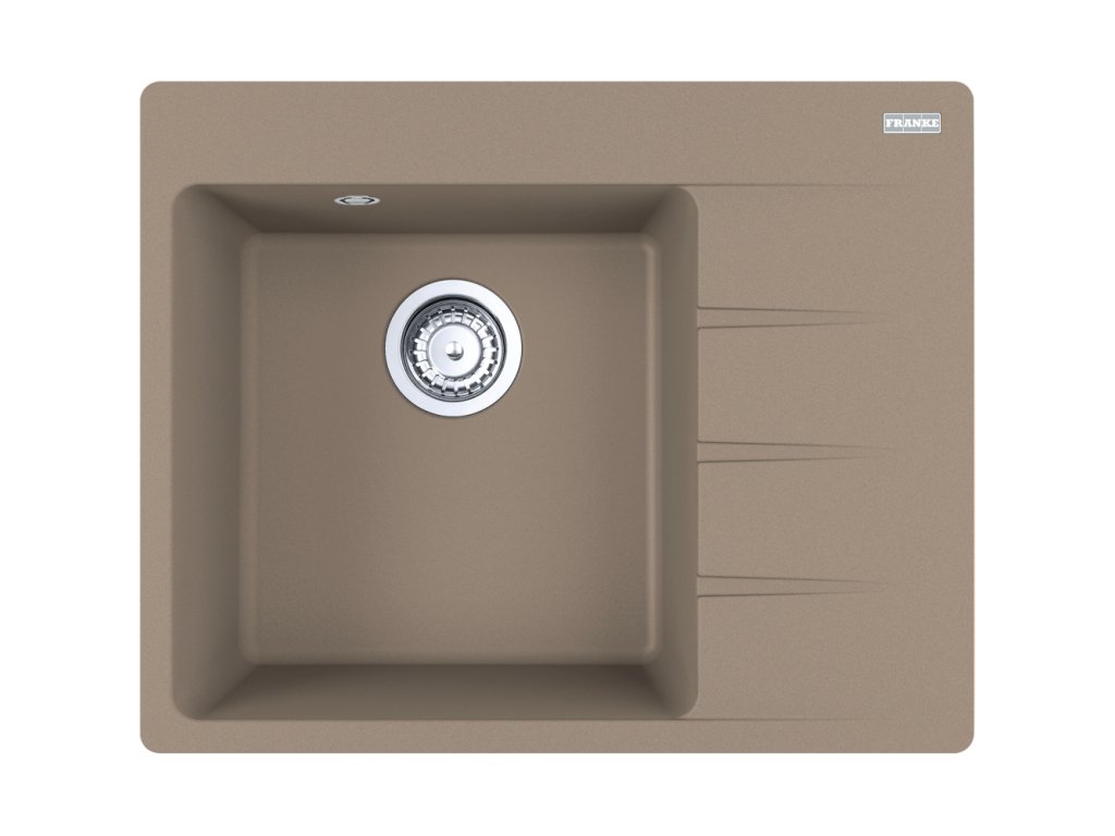 Fragranitový dřez Centro. Cena zahrnuje: Vymezovací podložku pro montáž kuchyňské baterie. Sítkový ventil 3 1/2“ s přepadem. Sifon