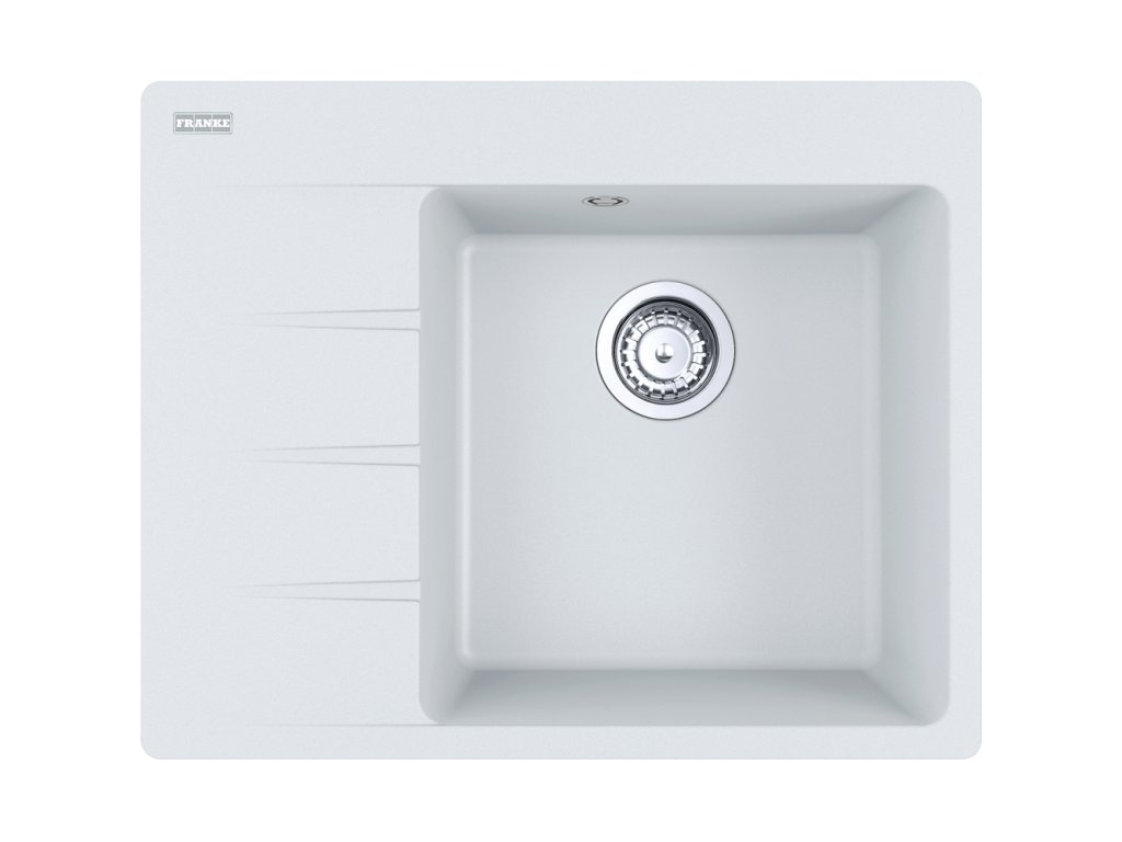 Fragranitový dřez Centro. Cena zahrnuje: Vymezovací podložku pro montáž kuchyňské baterie. Sítkový ventil 3 1/2“ s přepadem. Sifon
