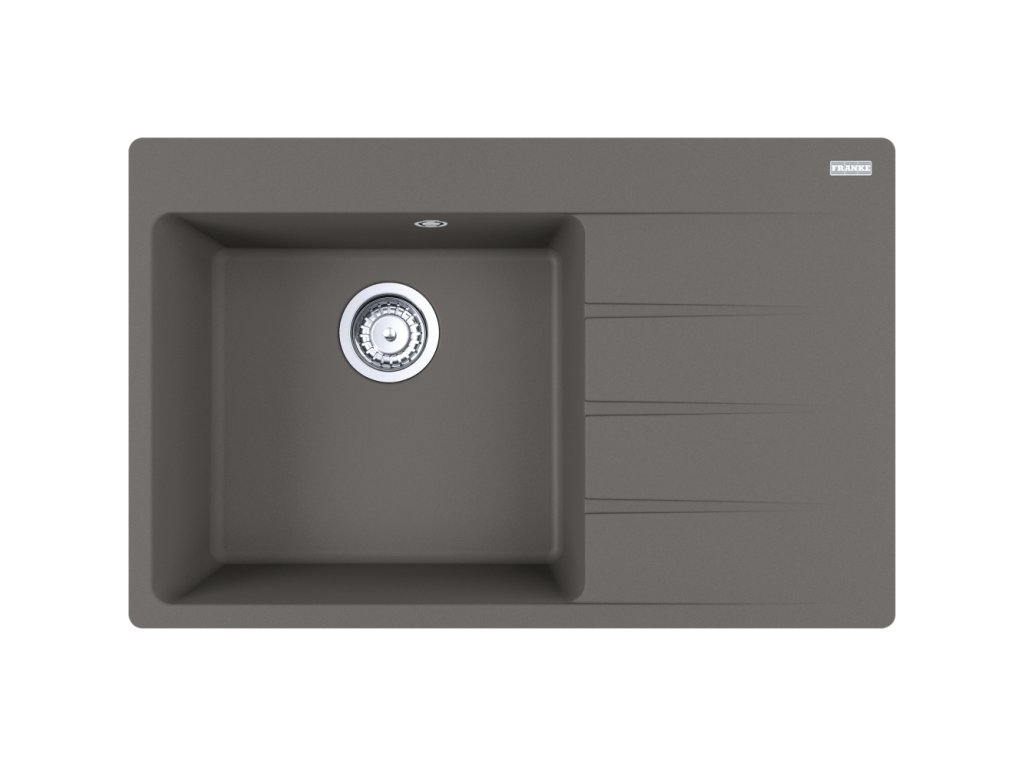 Fragranitový dřez Centro. Cena zahrnuje: Vymezovací podložku pro montáž kuchyňské baterie. Sítkový ventil 3 1/2“ s přepadem. Sifon