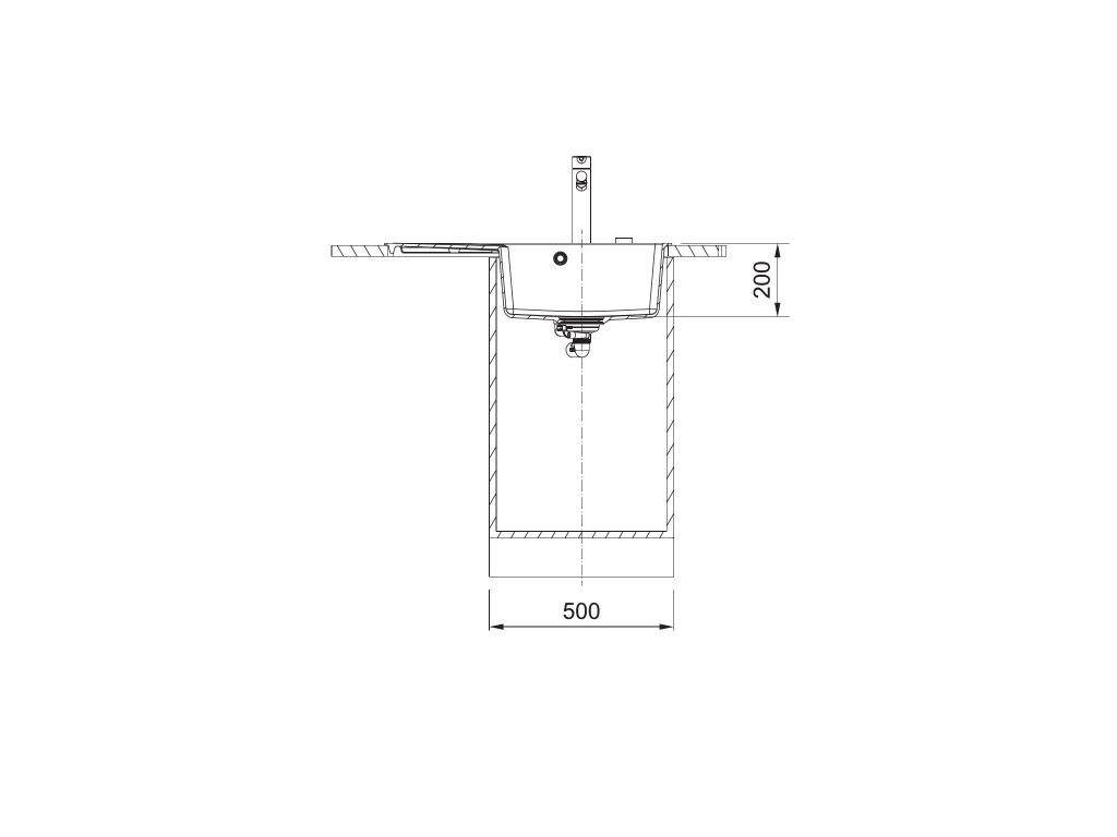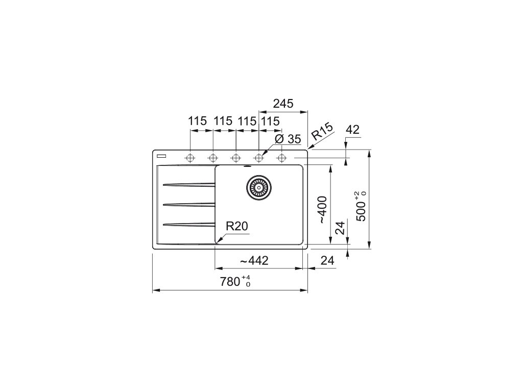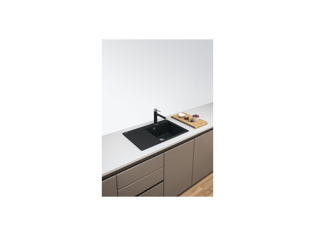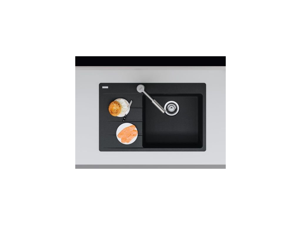 Fragranitový dřez Centro. Cena zahrnuje: Vymezovací podložku pro montáž kuchyňské baterie. Sítkový ventil 3 1/2“ s přepadem. Sifon