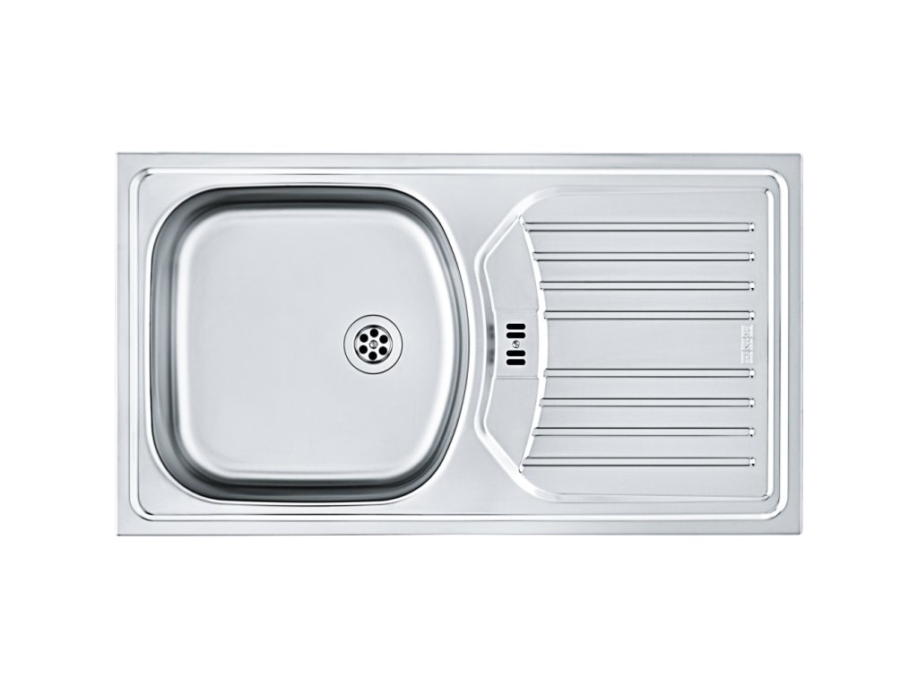 Nerezový dřez Eurostar Nova. Cena zahrnuje: Ventil 6/4“ s přepadem. Sifon 6/4“ s odbočkou na myčku nádobí.