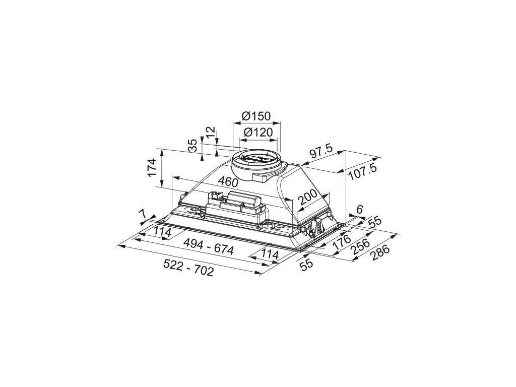 Vestavný odsavač par Box. Provedení nerezový rám. Energetická třída B. Posuvné přepínače. 3 Stupně výkonu.