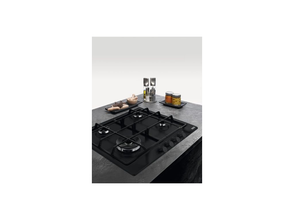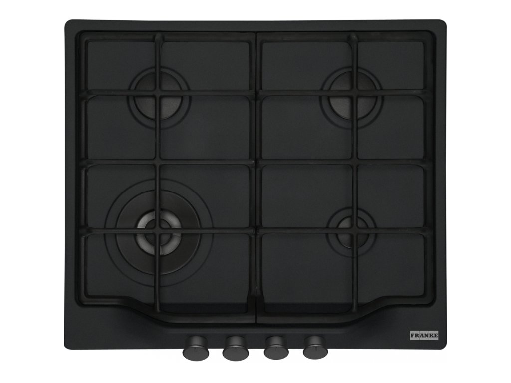 Plynová varná deska z řady Country. Provedení matná černá. 4 Plynové hořáky (1× Trojkorunka). Knoflíkové ovládání. Litinový rošt.