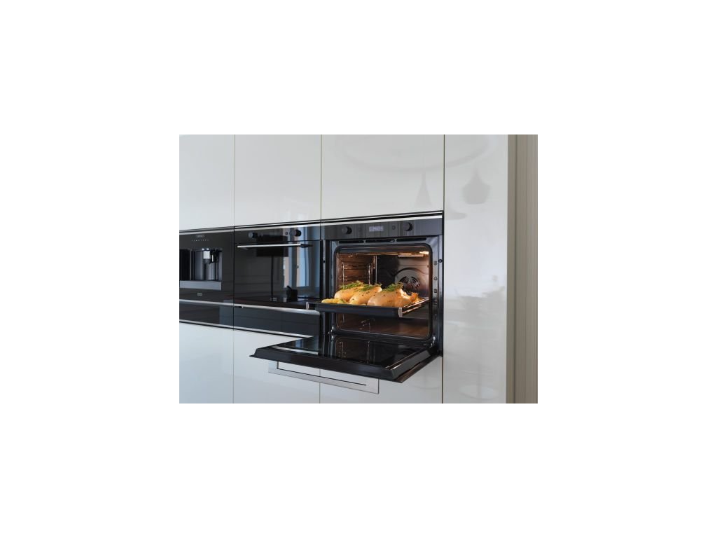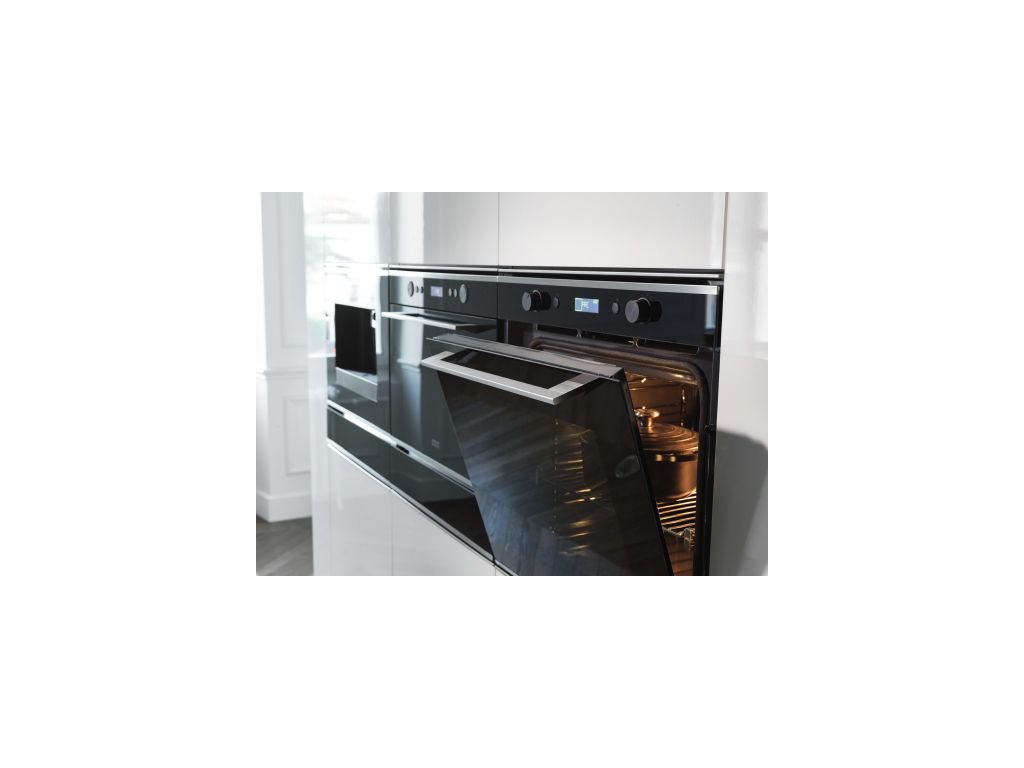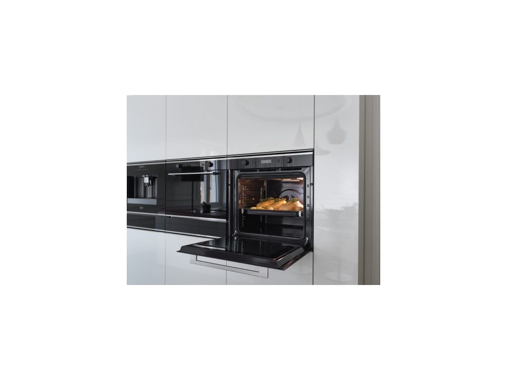Vestavná trouba z řady Mythos. Kombinace černého skla a nerezi. Kapacita 73 litrů. Energetická třída A+. Nabízí 19 funkcí (10 Manuálních funkcí, 9 Cook Assist funkcí). LCD bílý dislej + 2 Ovládací knoflíky. Smooth 2 Close dvířka. Pyrolytické čištění. 1 Pár teleskopick��ch výsuvů.