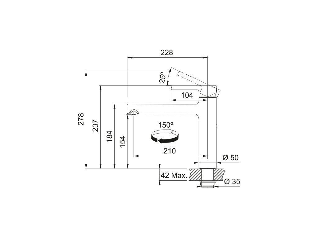 Otočná 150°. Připojení Hadičky 45 cm. Průtok vody 12 l/min. (3 bar). Laminární průtok vody. Technologie pro úsporu vody.