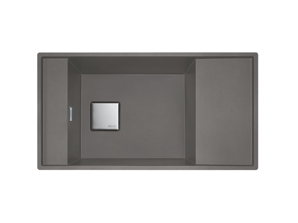 Fragranitový dřez Fresno. Cena zahrnuje: Rolovací rošt na odkapávací plochu. Easy Click sítkový ventil 3 1/2“ s přepadem a nerezovou