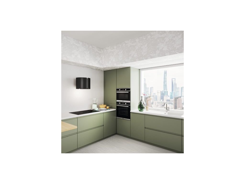 Komínový odsavač par Smart Suspended. Provedení matná černá (NCS S 9000-N). Energetická třída A. Tlačítkové ovládání. 3 Stupně