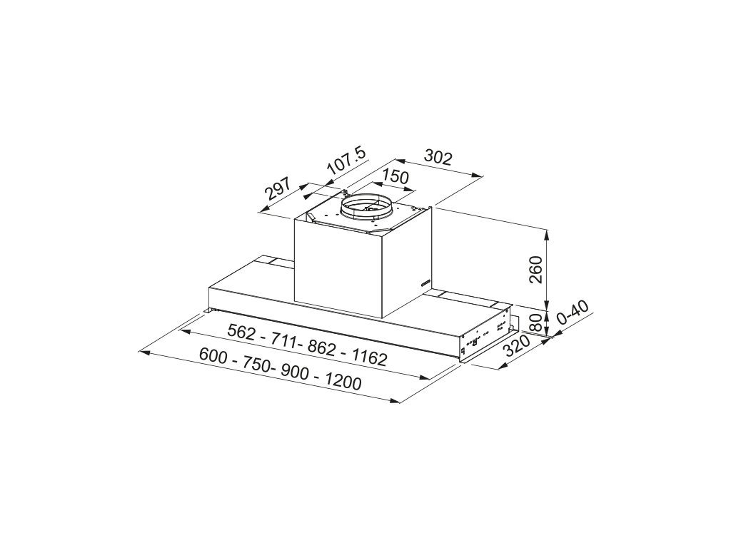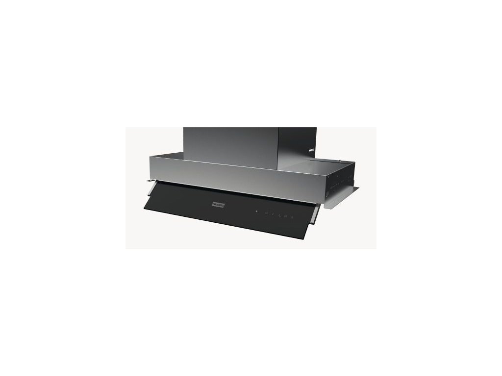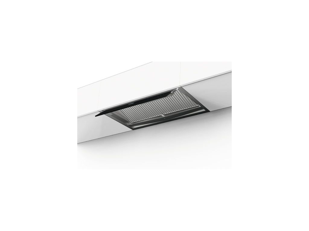 Vestavný odsavač par Maris Style Drip Free. PLNĚ VESTAVNÝ, NAHRAZUJE DNO SKŘÍŇKY. Provedení nerez a lišta z černého skla.