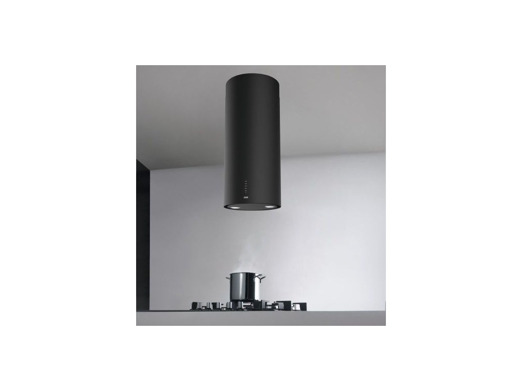 Ostrůvkový odsavač par Tube. Provedení matná černá (NCS S 9000-N). Energetická třída A. Tlačítkové ovládání. Štěrbinové odsávání. 3