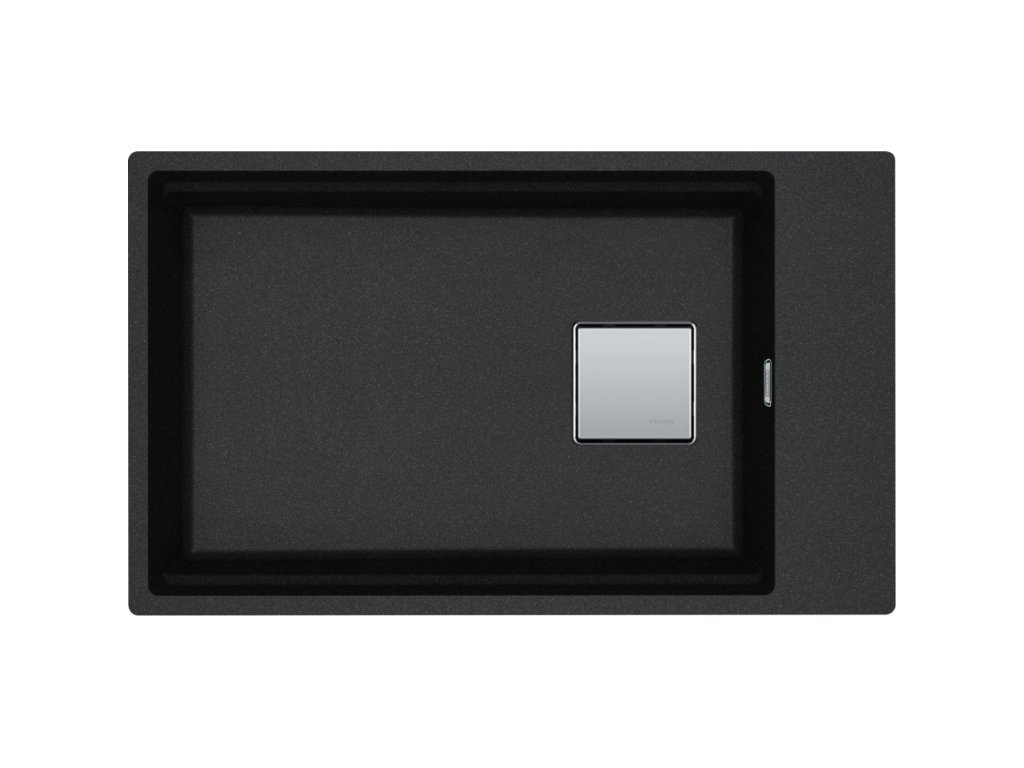 Fragranitový dřez Kubus 2. Cena zahrnuje: Easy Click sítkový ventil 3 1/2“ s přepadem a nerezovou krytkou ventilu. Dřez je bez