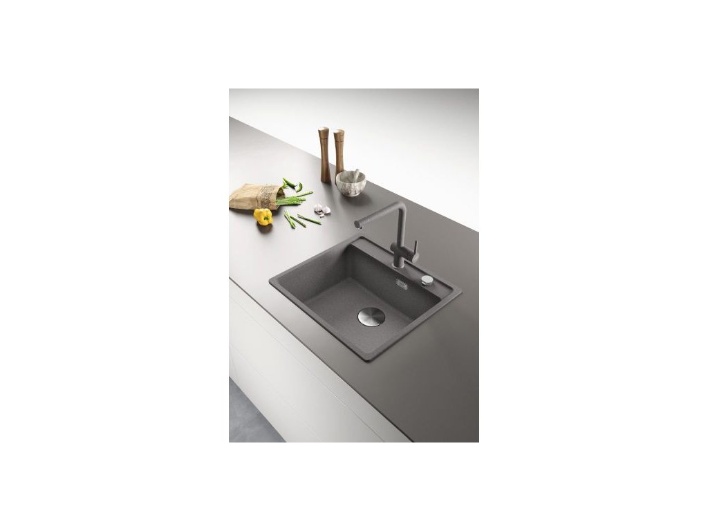 Fragranitový dřez Maris. Cena zahrnuje: Vymezovací podložku pro montáž kuchyňské baterie. Sítkový ventil 3 1/2“ s přepadem a