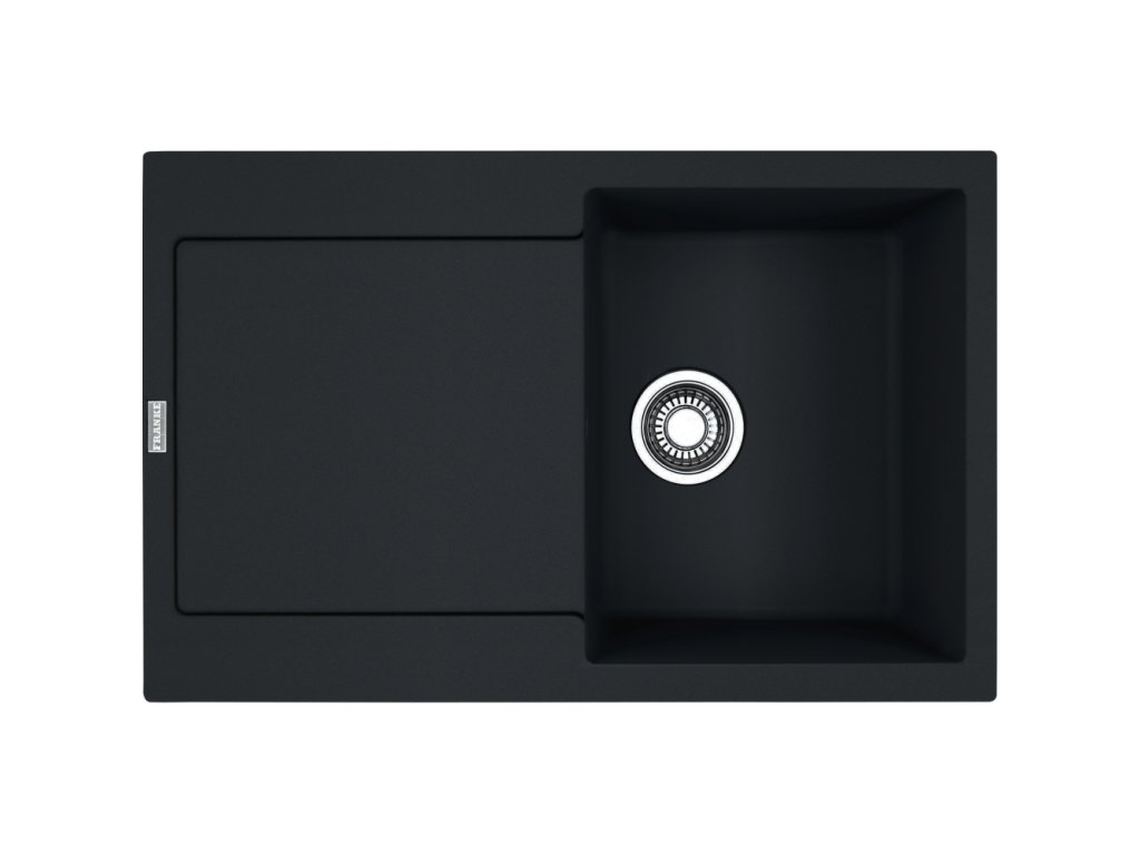 Fragranitový dřez Maris. Cena zahrnuje: Sítkový ventil 3 1/2“ s přepadem. Sifon pro úsporu místa 6/4“ s odbočkou na myčku nádobí. 4