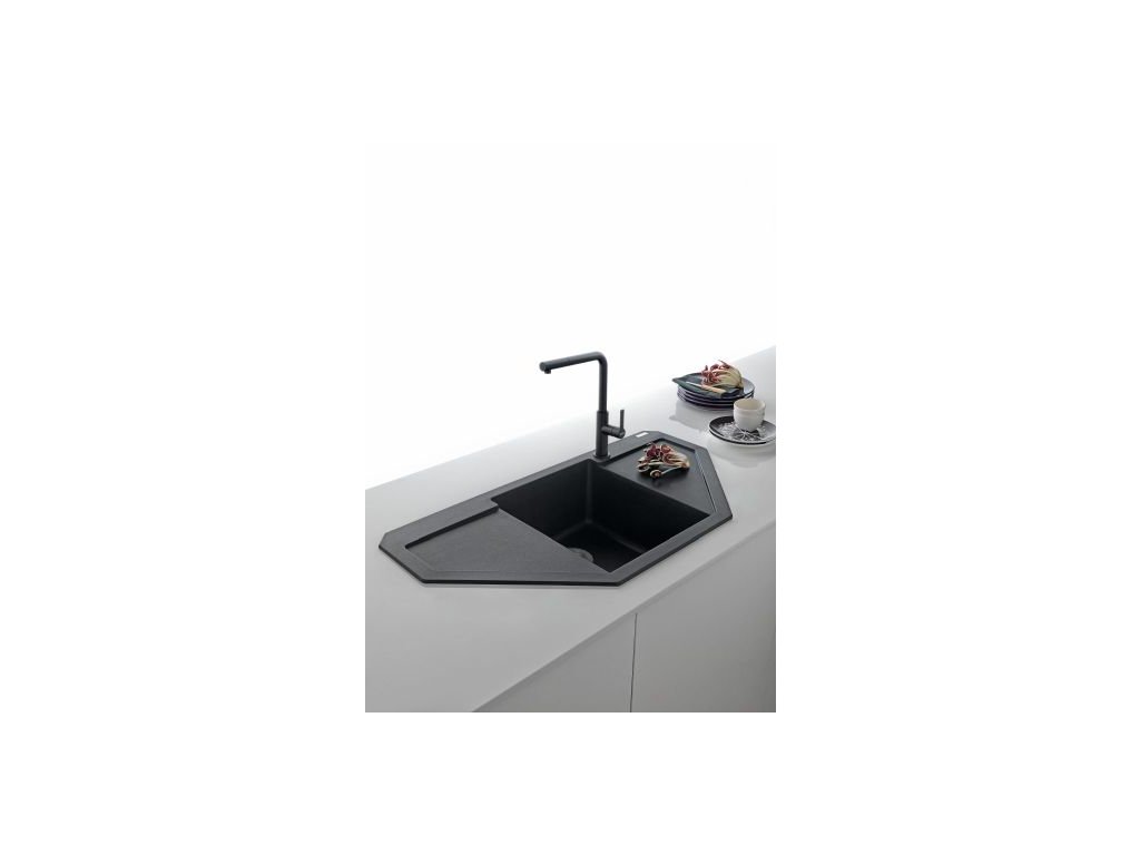 Fragranitový dřez Maris. Cena zahrnuje: Sítkový ventil 3 1/2“ s přepadem. Sifon pro úsporu místa 6/4“ s odbočkou na myčku nádobí. 2