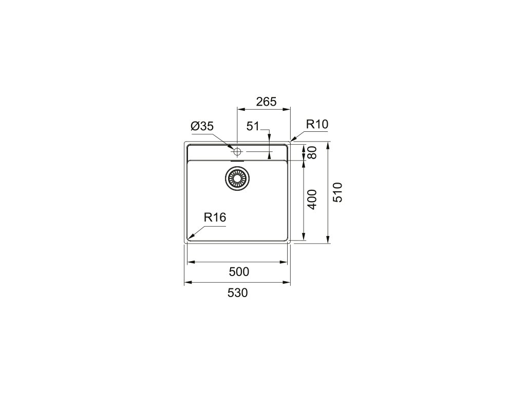 Nerezový dřez Maris. Cena zahrnuje: Sítkový ventil 3 1/2“ s přepadem. Sifon pro úsporu místa 6/4“ s odbočkou na myčku nádobí. Otvor