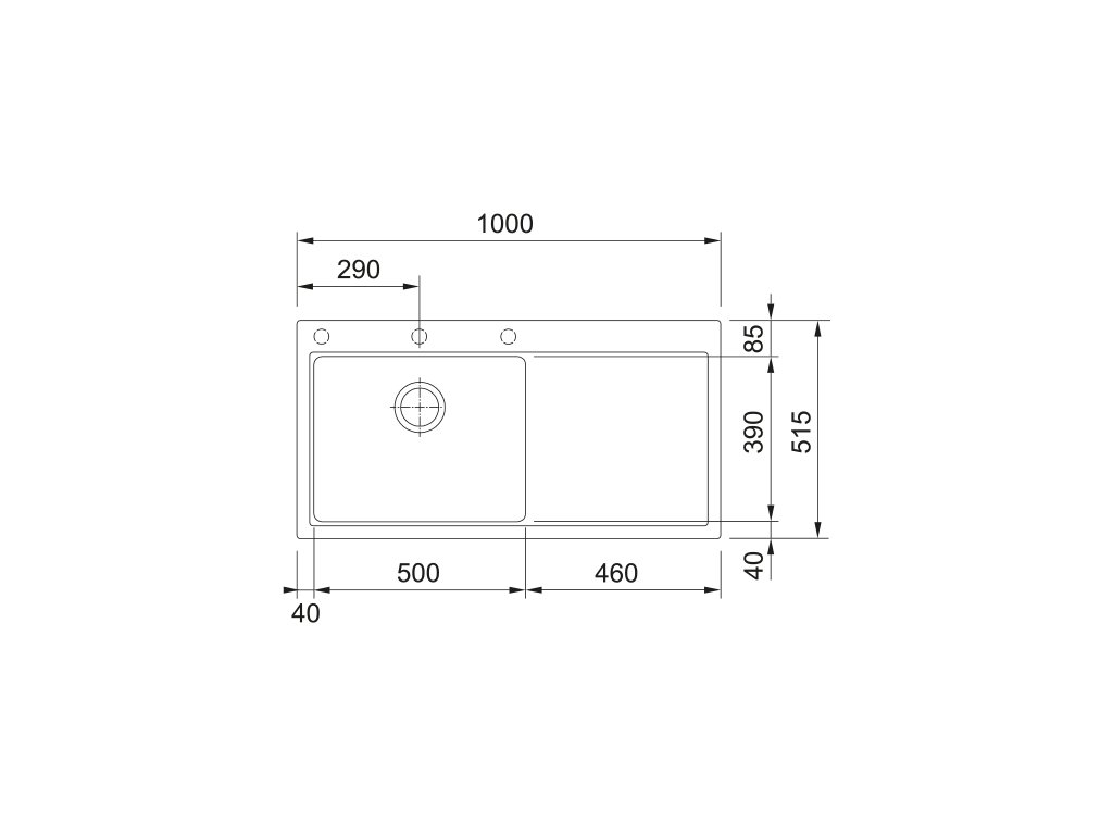 myčku nádobí. 3 Místa pro vyvrtání otvoru. Možnost umístit dávkovač saponátu. Dřez lze kombinovat s baterií ACTIVE TWIST. Otočením