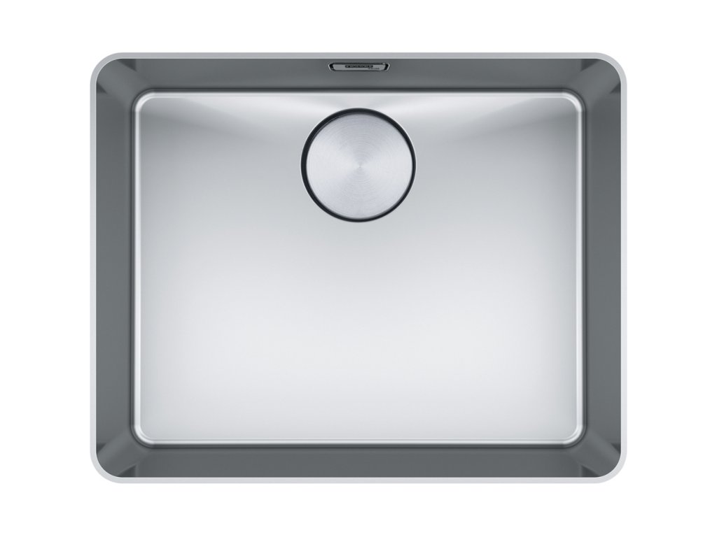 Nerezový dřez Mythos. Cena zahrnuje: Easy click sítkový ventil 3 1/2“ s přepadem a nerezovou krytkou ventilu. Sifon pro úsporu místa