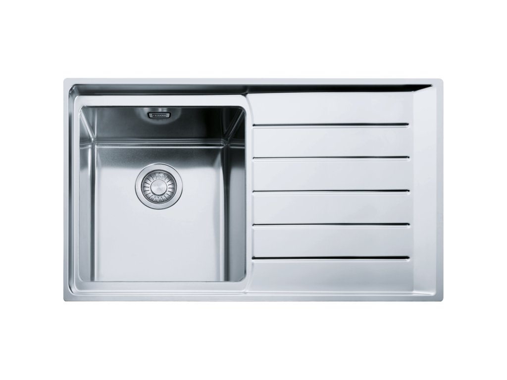 Nerezový dřez Neptune Plus. Cena zahrnuje: Sítkový ventil 3 1/2" s přepadem. Sifon pro úsporu místa 6/4" s odbočkou na myčku nádobí.