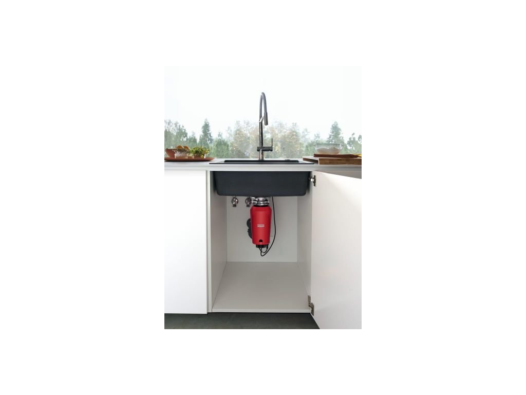 Drtič odpadu. Motor vysokootáčkový s permanentním magnetem. Drticí elementy z nerezové oceli. Tělo z kompozitu. Pneu ovladač chrom. Pro otvor ∅ 35 mm. Při montáži do desky nebo dřezu o tloušťce 1-30 mm. Technologie Silver Guard® - pomocí magnetického okraje příruby zabraňuje nežádoucímu pádu kovových předmětů do prostoru drticí komory a tím chrání drtič před poškozením.