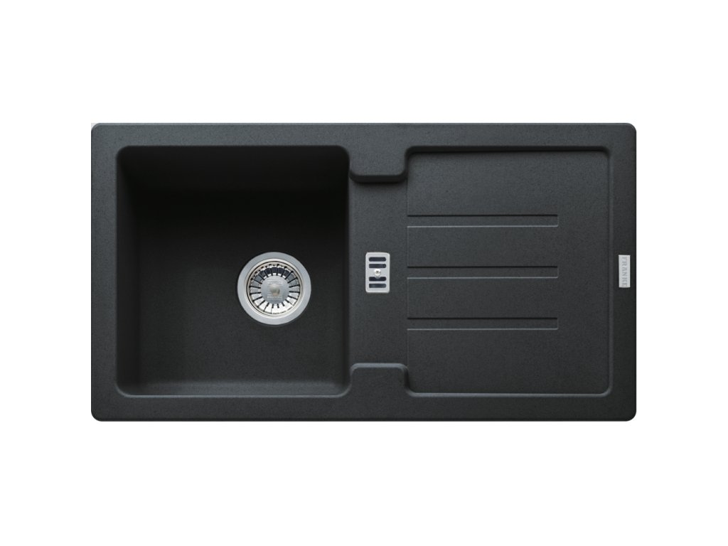Fragranitový dřez Strata. Cena zahrnuje: Sítkový ventil 3 1/2“ s přepadem. Sifon pro úsporu místa 6/4“ s odbočkou na myčku nádobí. 2