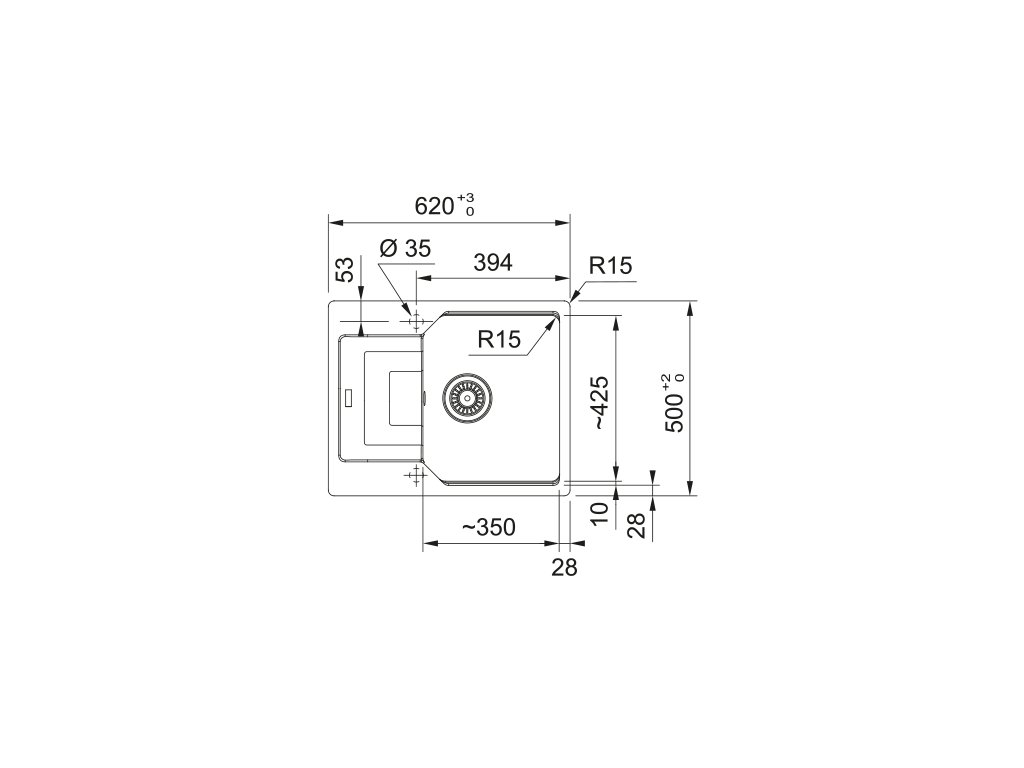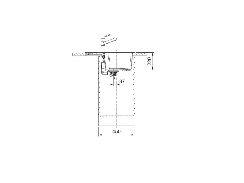 Fragranitový dřez Urban. Cena zahrnuje: Vymezovací podložku pro montáž kuchyňské baterie. Sítkový ventil 3 1/2“ s přepadem. Sifon