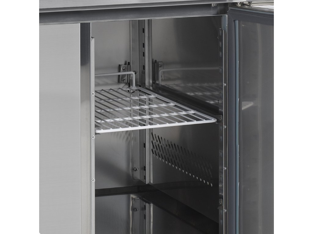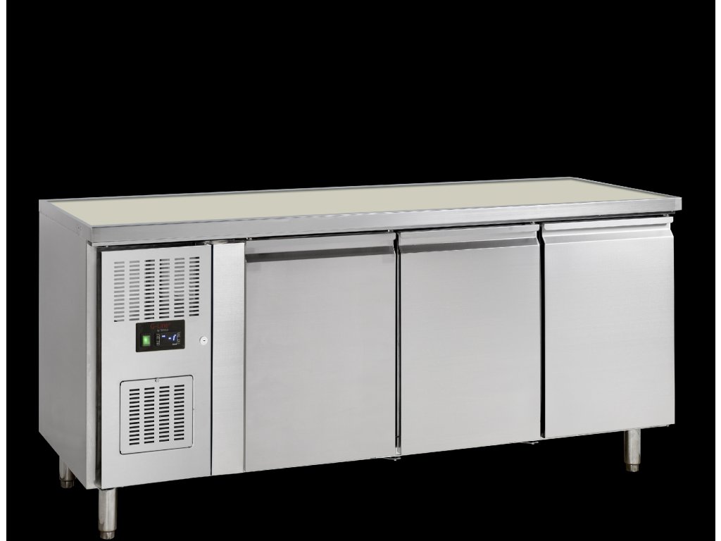 Tyto mrazicí nerezové stoly se dodávají standardně bez desky, která lze dokoupit na objednávku s lemem nebo bez lemu. Agregát je rovněž možné zvolit na pravé nebo levé straně. Stůl má samozavírací dveře. Tyto stoly jsou k dispozici také v chladicí verzi.