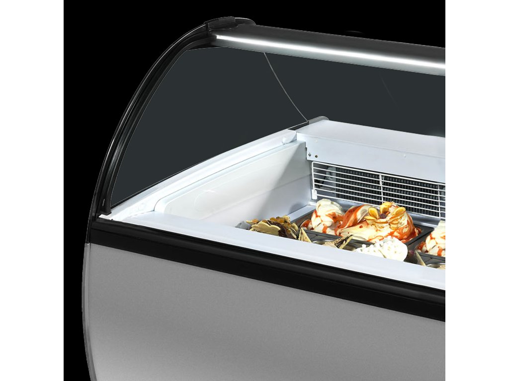 ISABELLA je prostorný distributor kopečkové zmrzliny se statickým chlazením. Oblé sklo zajišťuje skvělou prezentaci zmrzliny, zadní strana je prakticky uzpůsobena pro rychlou a pohodlnou obsluhu. Distributory ISABELLA jsou samozřejmě vhodné pro standardní gastronádoby na zmrzlinu GN 360x165x120 mm (nejsou součástí balení). Díky úložnému prostoru ve spodní části je doplňování zmrzliny během špičky rychlé a snadné.