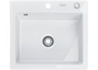 Fragranitový dřez Urban. Cena zahrnuje: Vymezovací podložku pro montáž kuchyňské baterie. Sítkový ventil 3 1/2 “ s přepadem. Sifon pro úsporu místa 6/4“ s odbočkou na myčku...