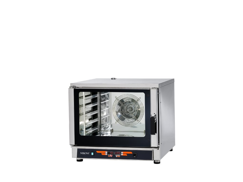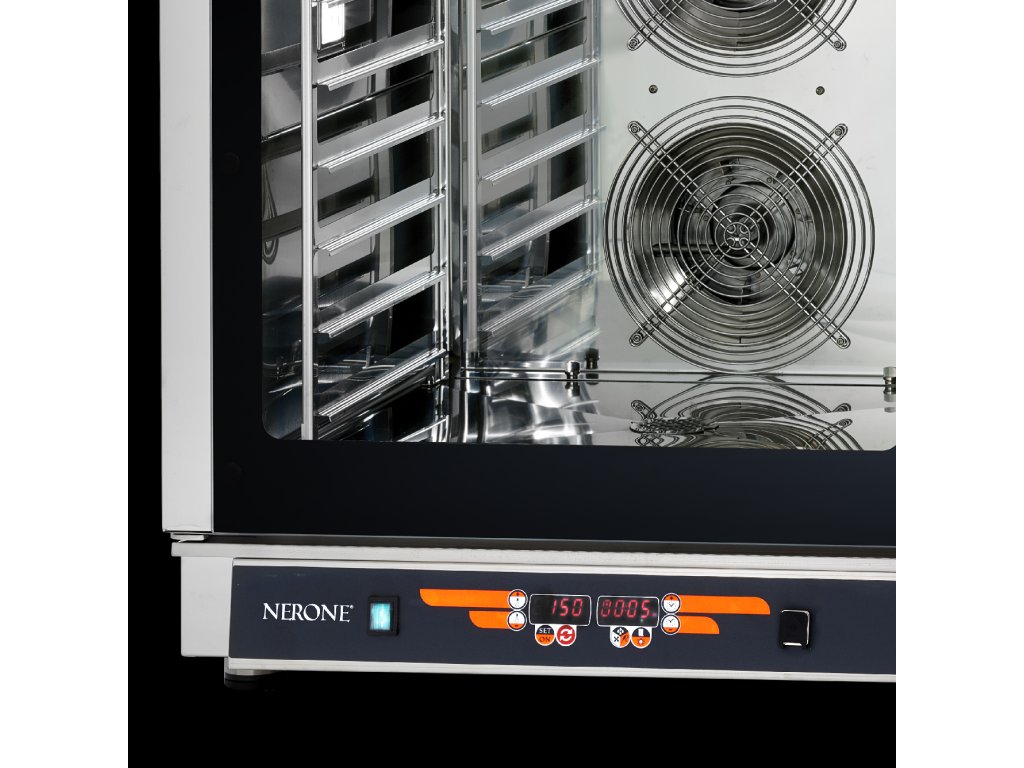 Digitální konvekční (horkovzdušná) pec s přivlhčováním a regulací páry 10 až 100 %. Díky páře nedochází k vysoušení produktů, je zachována jejich šťavnatost. U pečení pečiva má pára vliv na rovnoměrnou strukturu a následně jeho kvalitu. V sérii NORDline Nerone MID je počet roštů (600 x 400 mm) nebo GN 1/1 dán číslem v názvu za "MID". Rošty ani GN nejsou součástí.