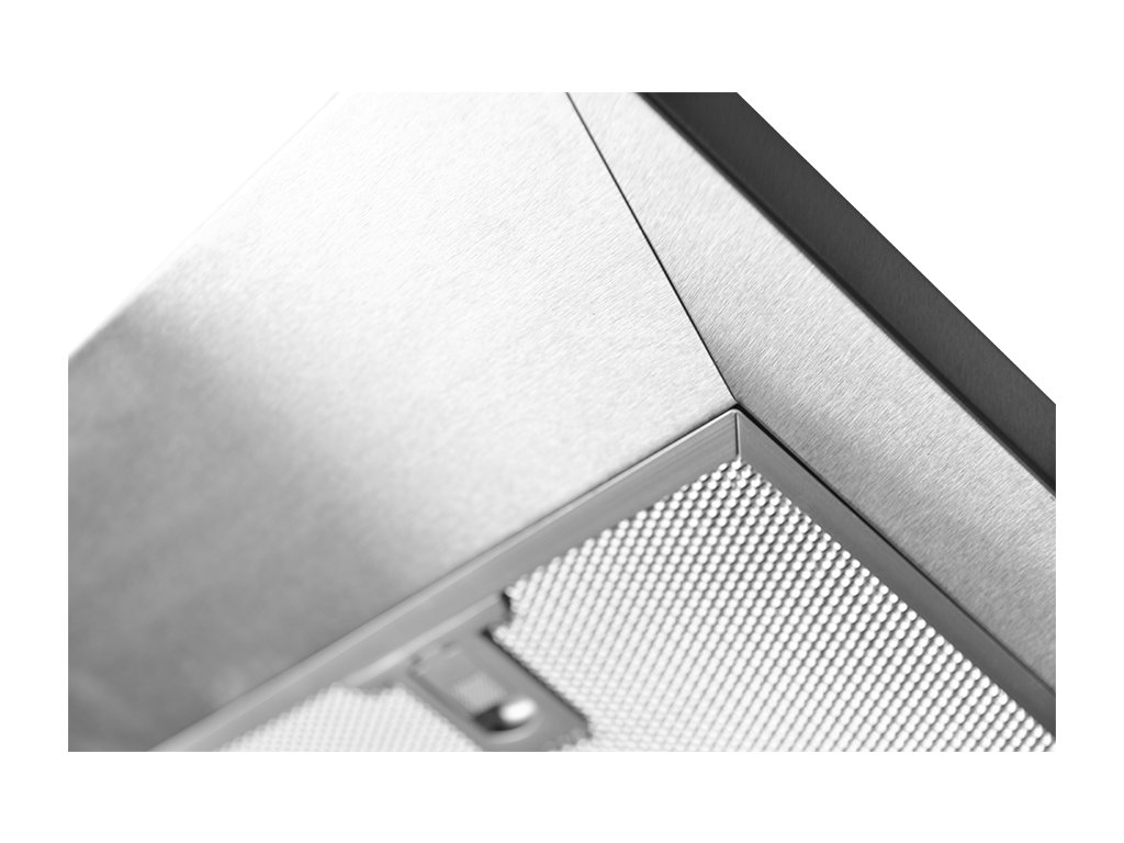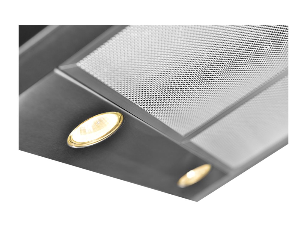 Komínová ke zdi, 600 mm, nerez, ovládání VL3 s modře prosvětlenými tlačítky, 1 motor BT2 240 W, 3 rychlosti, 645 m3/h (5 Pa) – dle UNE-EN 61591, max. hlučnost Lw 69 dB(A), max. tlak 405 Pa, 15 min. časovač, halogenová světla