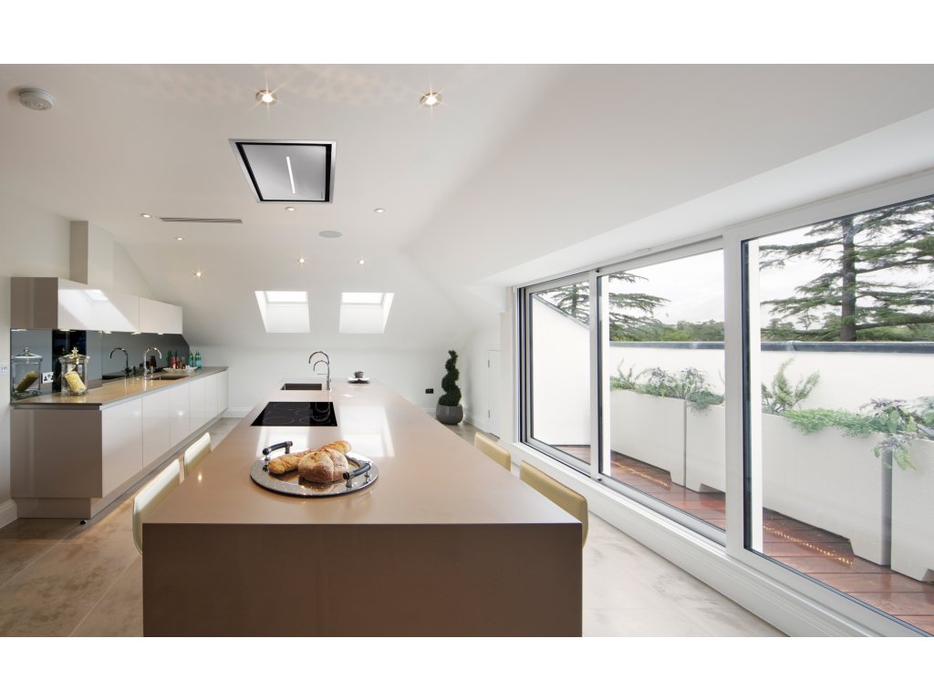 Stropní digestoř, šíře 90 cm, nerez, max. výkon 620 m³/h (5 Pa), hlučnost Lw 50 – 67 dB(A), 3 rychlosti + TURBO, kovové sendvičové tukové filtry, které lze mýt…