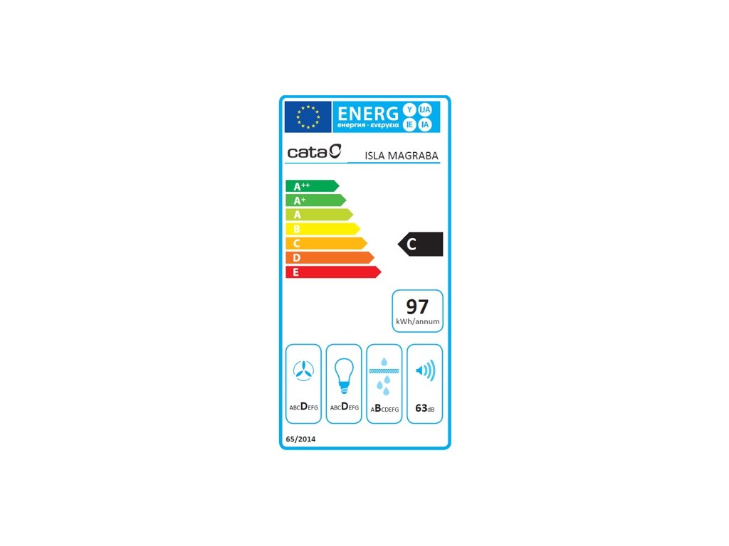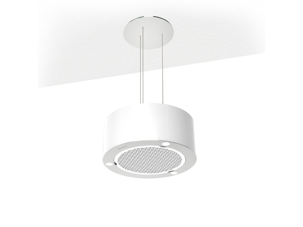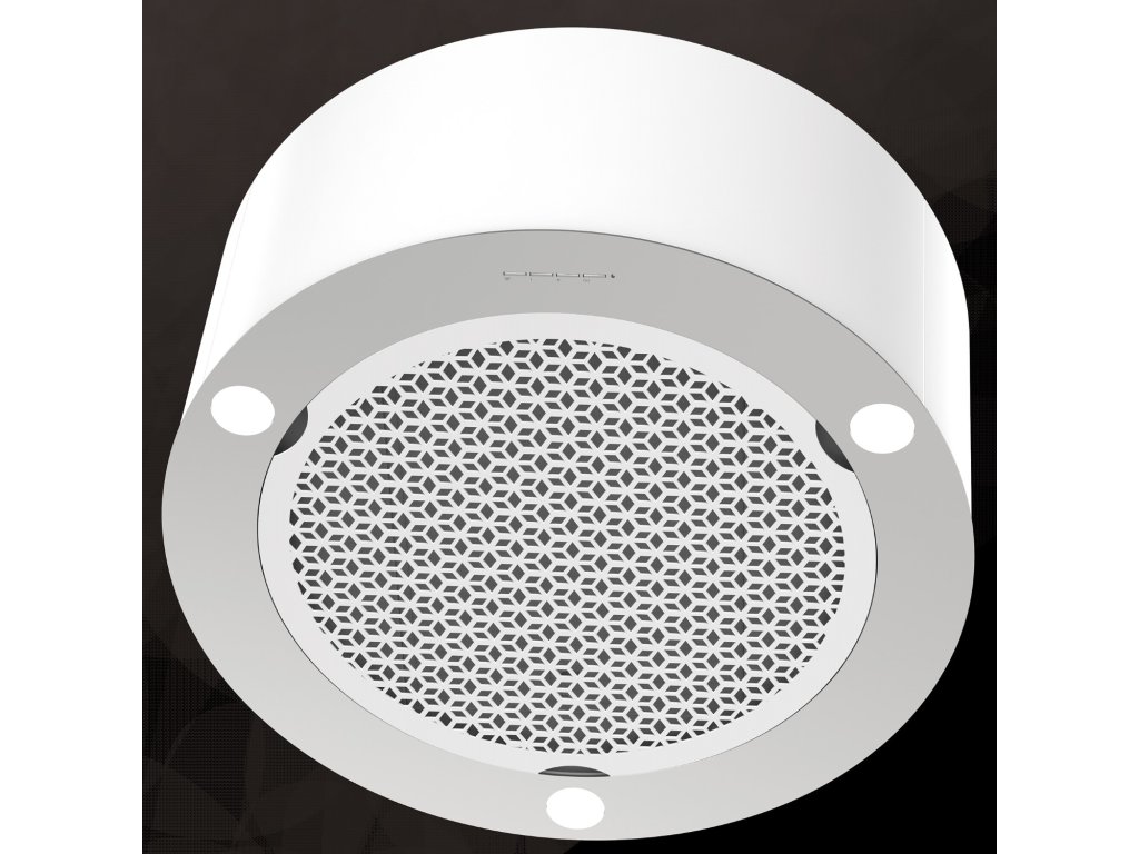 Ostrůvková lustrová digestoř, šíře 65 cm, nerez/bílá, max. výkon 645 m³/h (5 Pa), hlučnost Lw 48 – 63 dB(A), 3 rychlosti, kovové sendvičové tukové filtry, které lze mýt v myčce, v myčce lze mýt i uhlíkový pachový filtr, digestoř určená pro provoz v recirkulačním režimu, úsporné LED osvětlení 3 × 3,5 W, elektronické tlačítkové ovládání s doběhovým časovačem