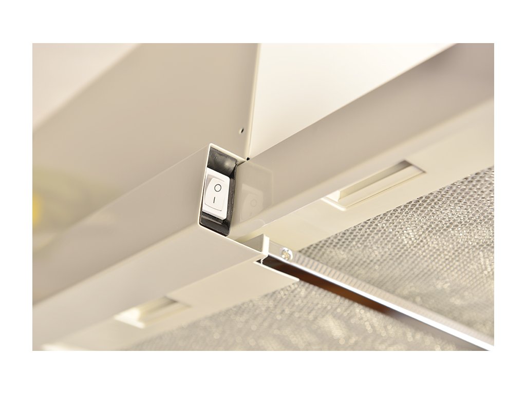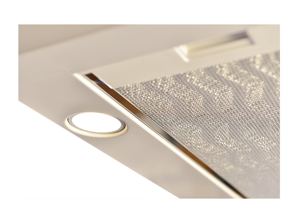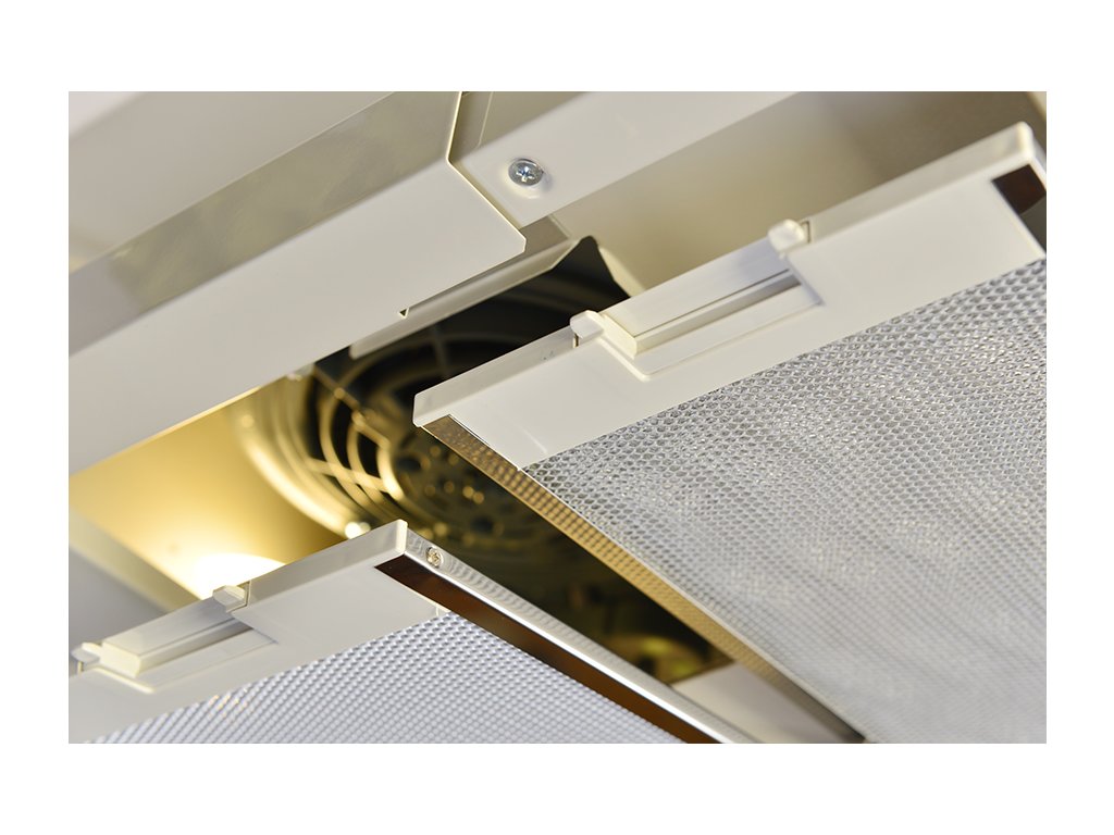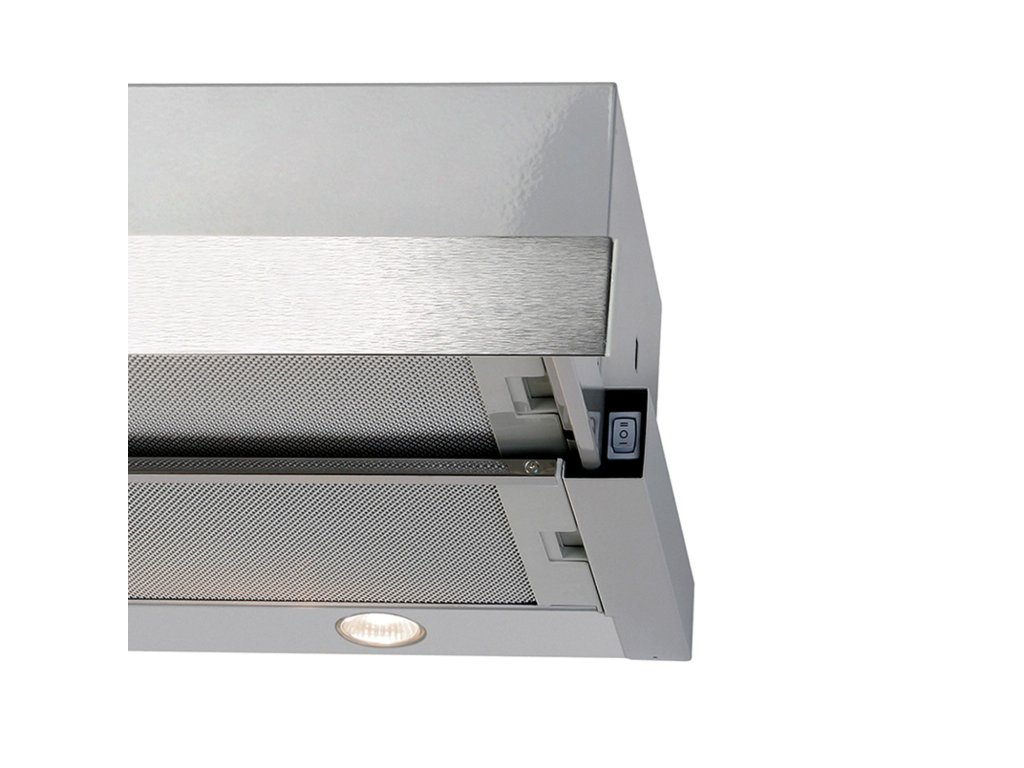 Vestavná výsuvná, 600 mm, nerez lišta s povrchem DurAlum, 1 motor 80 W, 2 rychlosti, 340 m3/h (15 Pa), max. tlak 194 Pa, max. hlučnost Lw 55 dB.