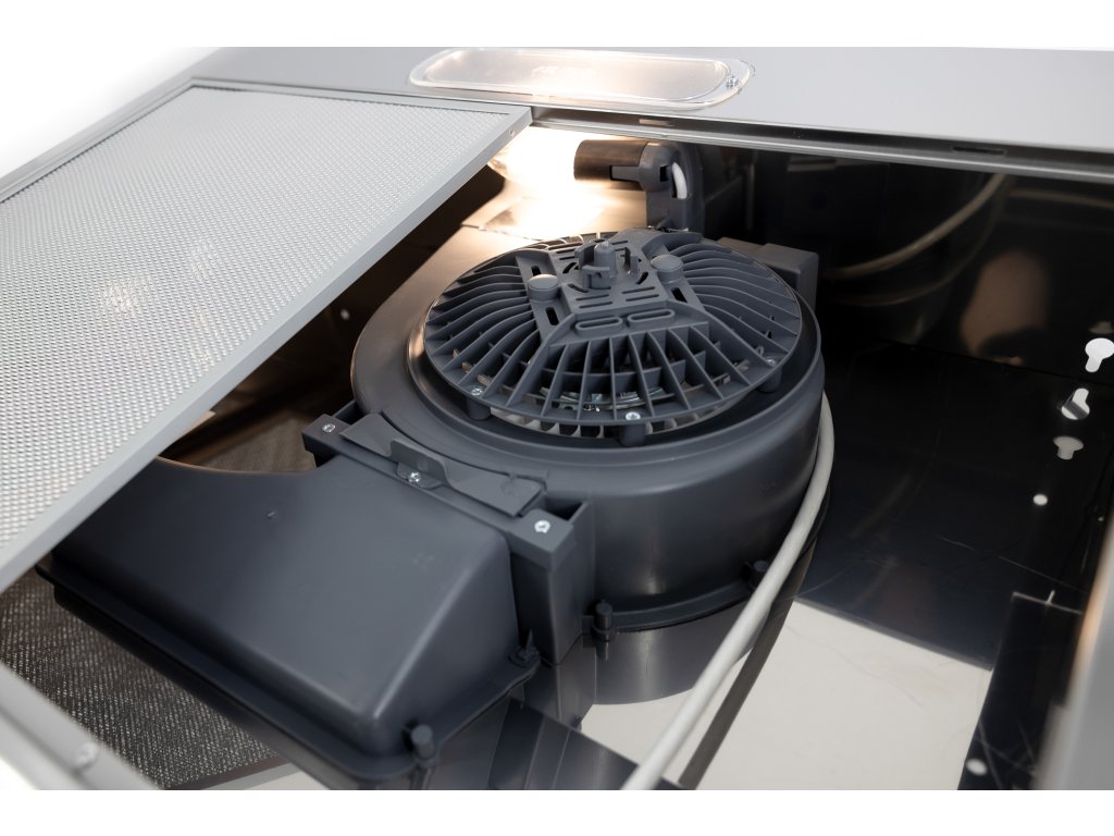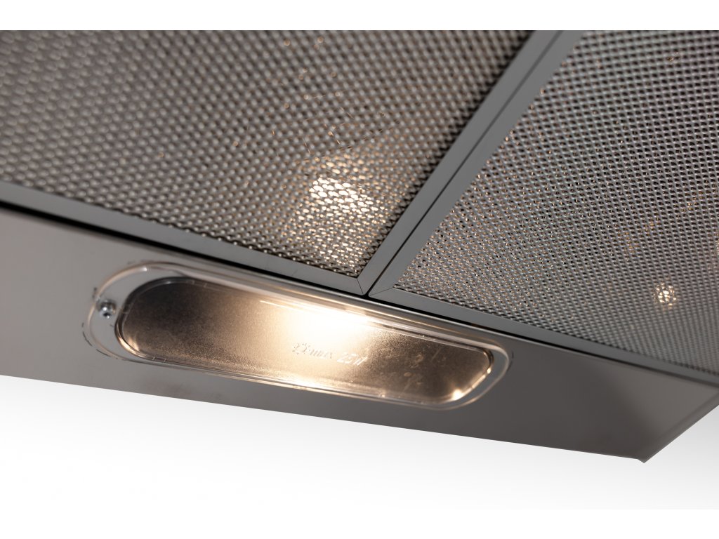 Podskříňková digestoř, šíře 50 cm,nerez, max. výkon 160 m³/h (15 Pa), hlučnost Lw 50 – 61 dB(A), 3 rychlosti, mechanické tlačítkové ovládání, kovové sendvičové tukové filtry, které lze mýt v myčce, možnost práce v odtahovém i recirkulačním režimu, výstupní průměr 120 mm, osvětlení 1 × 4 W LED žárovka E14, Výbava: zdarma zpětná klapka