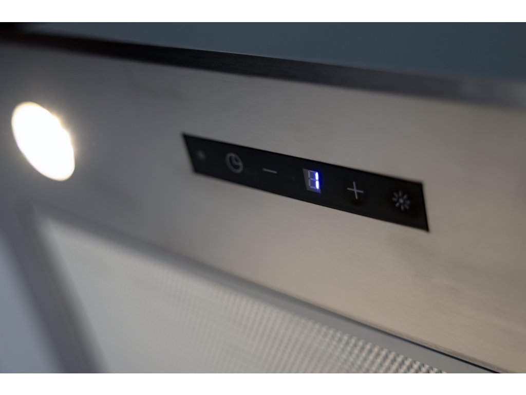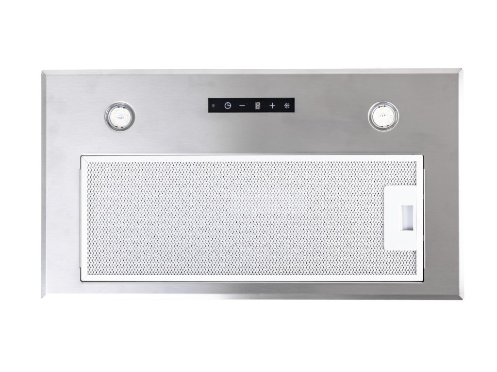 Vestavná digestoř, šíře 60 cm, nerez, max. výkon 822 m³/h (5 Pa), hlučnost Lw 51 – 69 dB(A), 3 rychlosti + TURBO, odsávací jednotky mají individuálně vyvažovanou turbínu, motory jsou opatřené vratnými tepelnými pojistkami (při přetížení motoru vypne, po jeho vychladnutí opět sepne), kovové sendvičové tukové filtry, které lze mýt v myčce, výstupní průměr 150 mm, možnost práce v odtahovém i recirkulačním režimu, Výbava: úsporné LED osvětlení 4 × 2 W, elektronické dotykové ovládání s doběhovým časovačem, zdarma dálkový ovladač i s bateriemi, zdarma redukce na 120 mm a zpětná klapka, Benefity: používání dálkového ovládání usnadňuje údržbu digestoře (méně otisků na digestoři = snazší čištění), ovladač je opatřený magnetem, lze jej přichytit třeba na dveře lednice (může být snadno po ruce, nikam nezapadne)